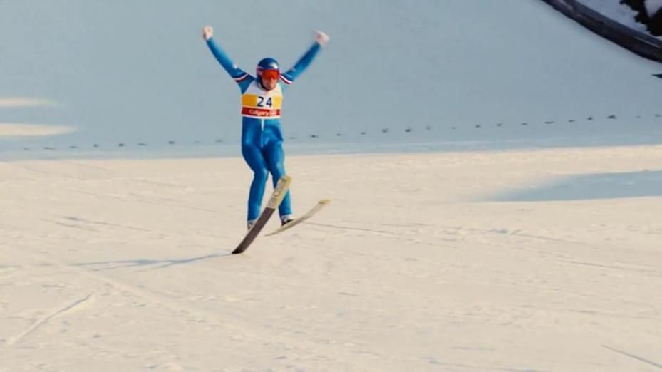 艾迪(塔伦·埃格顿饰)本来是高山滑雪选手,但因为这个项目竞争激烈,为了实现奥运梦,他改练跳台滑雪。艾迪克服了资金困难,于1984年远渡重洋前往德国进行训练。此外,即使他腿部有少年时代的损伤,长大之后视力很差,面对外界的质疑和打击,艾迪还是乐观、坚毅、永不言弃。终于,艾迪于1987年代表英国参加世界锦标赛,获得1988年冬奥会参赛资格。这位患有高度近视的英国滑雪运动员,虽然没有骄人战绩也从未奖牌加身,但依然是冬奥会历史上难以抹却的一笔,深受大家喜爱,得到 “飞鹰”外号,国际奥运会守则上的“飞鹰规则”也因他而生。
